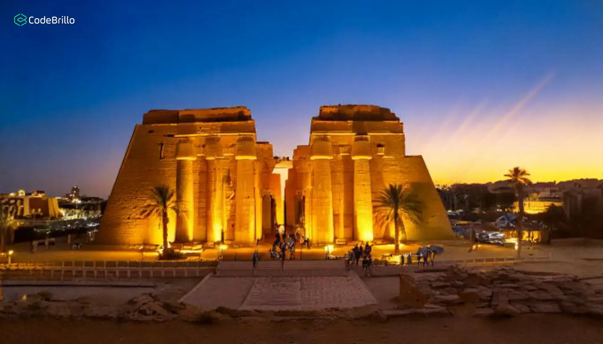 Visit Luxor Temple under the magical glow of evening lights.